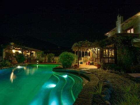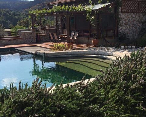 Great countryside house for sale in Korinthia, Peloponnese in a large plot of land with significant ecological character. it is a 280sqm bioclimatic house spread over 3 levels , within a spacious land of 7.800sqm. totally landscaped. The house, which is located 3,5Km from the beach, is build and maintained in an extra eco way using materials that are not harmful to the environment and humans. Specifically,the estate consists of : 5 bedrooms 1 large storage room 2 kitchens 3 bathrooms, 1 with jacuzzi bath 1 sauna 2 living rooms 3 wood stoves for extra heating in villa Central integrated vaccum cleaner system Large external barbecue with wood oven and outdoor kitchen Natural water swimming pool of 50sqm with jacuzzi corner (unchlorinated) with a non chemical water purification system, toilet, shower changing room and storage room by the pool Workshop/storage area outside the villa Gas boiler connected to radiators for central heating throughout. A separate caretaker/guest studio cottage with kitchenette, bathroom and air conditioning The property has large expanse of land which contains - 7.8 acres of land with 60 olive trees and 50 fruit/nut trees (oranges, lemon, grapes, figs, pomegranate, walnut, almond and many more) A large green house Fire safety system throughout the land Rain water recycling system Automated drip irrigation system for watering the land. Fire wood storage area Remote operated gates Double glass windows Dog houses Chicken house Plot plan and floor plans available upon request.