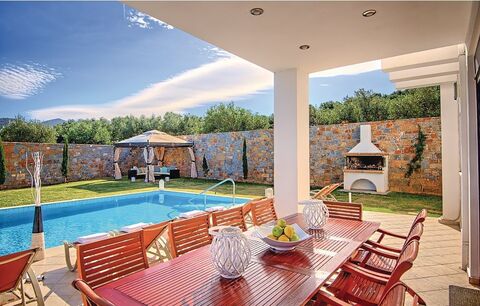 This luxurious villa for sale in Heraklion, Crete is located outside of the village of Milatos a beautiful seaside, yet traditional place. The villa has 6 bedrooms and 3 bathrooms and is developed on 4 floors. The top floor has only one bedroom, offering privacy, while the floor below it, includes 3 more bedrooms and a bathroom. Further below, there is the living room & kitchen area, in a large open plan. The kitchen is fitted and of high quality, in dark coloured wood. The appliances are premium and in inox colours. This floor gives access to the terrace, pool and garden area, through large windows. On the lower level, the last 2 bedrooms and another bathroom can be found. All bedrooms are really spacious and have windows overlooking a different side of the countryside and sea. The outdoor area is beautiful, with lively grass lawns, all types of garden furniture, a barbeque and of course the infinity pool. The landscape around the villa is typical Cretan, with the sea, the olive trees and the serenity. The villa is also a great opportunity to use as a rental property, as it can offer a great income. This part of northern Crete has been developed a lot as a tourist destination, in the last years. Milatos is a seaside village, located between Heraklion and Agios Nikolaos. The village has a beach, a fantastic small fishing port and other rocky beaches around it. There are amazing fish taverns on the beach and also a kafeneion in the village. A lot of traditional houses have been renovated in this picturesque place in a way that keeps the original character of the community alive. in the village there is also a cave and a very nice route for hiking, offering a panoramic view.