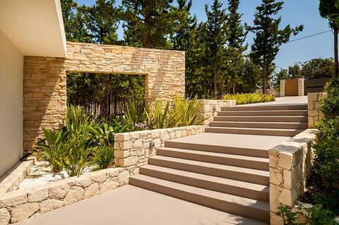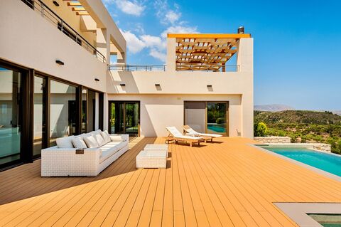 This is a spectacular 370m2, 5 bedroom, luxury villa set in the hills of Crete and overlooking the sea. it features a heated swimming pool, beautifully landscaped gardens, sauna, wine cellar, cinema and games room. This villa is an example of a luxury villa that we could build for you on the island of Crete. Built by our partners, this villa has been sold and can also be built in another location and to your personal specifications and design. Our building division specialize in building superb and luxury homes for clients from all over the world. We have real estate specialists, architects, interior designers and engineers who can expertly guide you through the entire process of choosing land, designing and then building any property to your wishes. All of our homes are designed and built for comfortable year round living and include swimming pools, fully landscaped gardens, underfloor central heating, air conditioning, italian kitchens, Superb floor tiles, High quality bathroom furniture, fitted wardrobes, European standard plumbing, Electric roller shutters and much more. Villa construction takes approximately 12 months and payments are completed in stages throughout the build process. Please note that the price of construction does not include the cost and purchase of the land. As well as being a premier property specialist in Crete, we also offer a full villa rental and property management service to our clients, meaning we are able to take care of all of your requirements from start to finish and beyond. Contact us for further details of our services if you would like a property built to suit your requirements and budget, please contact us.