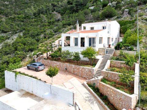 Discover this stunning property in Fragolimano, Korinthia, perfectly positioned to offer uninterrupted, panoramic sea views. Located just 200 meters from a pristine beach with crystal-clear waters, this unique property provides the ideal setting for those seeking a serene coastal retreat. With its prime location and breathtaking surroundings, it offers the perfect blend of natural beauty and accessibility, making it an exceptional opportunity for anyone looking to embrace the tranquil lifestyle of the Greek seaside. Set on a 1,000 sqm plot, this 155 sqm furnished home is nestled among lush pine trees, providing a serene retreat with the vibrant blue of the sea as a stunning backdrop. The residence offers four spacious bedrooms and two bathrooms, featuring high-quality finishes such as marble stairs and granite tiles. Outdoors, you'll find a fully equipped BBQ area, a beautifully landscaped garden with flowering plants and fruit trees, and four parking spaces, including one covered spot. Additional amenities include an alarm system, a charming tiled roof, and expansive terraces perfect for outdoor living. Located less than an hour and a half from Athens and just a 10-minute drive from the nearest village, this property offers the perfect combination of natural beauty and convenient access. Sold fully furnished and equipped, this home is ready for immediate enjoyment. Floor plans are available upon request.