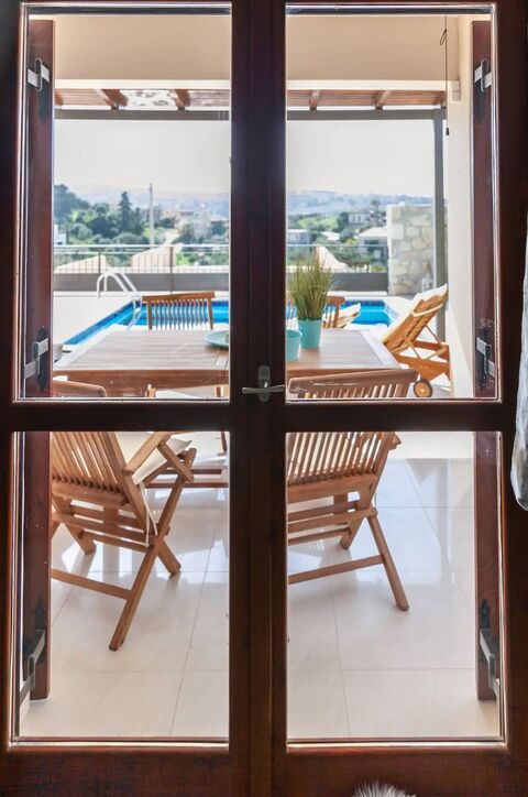 This contemporary villa for sale in Platanias, Chania, Crete, is situated in the serene village of Modi. The property spans 500m2, with a stylish and comfortable 80m2 living space. it features two spacious bedrooms, one bathroom, and is designed all on a single floor for easy living. The villa boasts a fully equipped kitchen with modern appliances, a bright living and dining area that flows directly to the private pool area, and two well-sized bedrooms, each with air-conditioning for added comfort. The expansive terrace provides the perfect space for outdoor relaxation, complete with a private swimming pool, sunbathing area, and a dining space to enjoy meals while soaking in the stunning views of the surrounding mountains and countryside. Modi is renowned for its peaceful and picturesque environment, offering a peaceful escape while still being just 5 minutes from the sea and all essential amenities. This villa is an ideal choice for those seeking both modern comfort and natural beauty in a charming Cretan village. Modi is a picturesque, lush village that forms part of the Platanias municipality, offering a tranquil setting while being conveniently close to the beach and local amenities. The village is rich in traditional Cretan charm, with a variety of historic sights and cultural landmarks nearby. its peaceful atmosphere provides the perfect retreat, yet it's just a 20-minute drive to the vibrant city of Chania, ensuring easy access to all the attractions of the area. For those seeking adventure, Modi offers a wealth of exploration opportunities, making it an ideal destination for peaceful getaways or more active holidays.