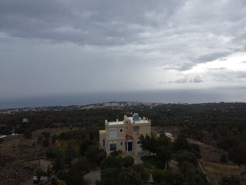 Exceptional Villa with Unobstructed Panoramic Views, Atsipopoulo Rethymno, Crete Set in an elevated position in the sought-after village of Atsipopoulo, this remarkable villa enjoys truly uninterrupted 360-degree views across the sea, the White Mountains, and the surrounding countryside. Offering complete privacy, generous living spaces and extensive land, the property represents a rare opportunity to acquire a substantial residence close to Rethymno. The villa offers a total living area of 395 m2 and sits on a 4,100 m2 private plot, complemented by an additional adjacent plot of 1,500 m2, bringing the total land area to 5,600 m2. The residence is arranged over three levels and comprises five bedrooms and five bathrooms, allowing for flexible use as a permanent home, luxury retreat or investment property. interior Layout Lower Level The first level features a bedroom with balcony access, a full bathroom, a large garage and a storage area previously used as a wine cellar. This floor also includes a substantial open-plan space with pre-installed plumbing and electrical connections, offering excellent flexibility. it may be configured as an additional kitchen and living area, home cinema, gym, art studio, playroom or further bedroom, depending on the buyer's needs. Main Level The main living level is designed for comfort and everyday living. it includes a fully equipped kitchen, a spacious dining area and a welcoming living room with a wood-burning stove and stone hearth. The master bedroom benefits from an en-suite bathroom and a closed-in balcony with north and east-facing sea views, ideal for enjoying the morning light. This floor also includes an additional room suitable as a bedroom or office, a further bathroom and a laundry room. A standout feature is the sunroom, enclosed on three sides by windows, offering breathtaking views of the sea, mountains and countryside throughout the year. Upper Level The top floor offers an independent open-plan kitchen and living area opening onto a large panoramic balcony. Two bedrooms with private balconies, a bathroom and an additional laundry room complete this level, making it ideal for guests or extended family accommodation. Outdoor Features The landscaped grounds are rich in natural beauty and agricultural character. The property includes a productive vineyard with Cabernet Sauvignon, Kotsifali and Romeiko grape varieties, as well as table grapes. There is an olive grove with 26 mature trees, a koi pond and a wide selection of fruit and nut trees, including apple, plum, quince, mulberry, carob, lemon, almond and fig trees, highlighted by an impressive century-old fig tree. An external bathroom is already in place, and the land offers ample space to create an infinity pool, jacuzzi, outdoor kitchen, barbecue and dining areas. The adjacent plot provides further potential, whether as an extension of the vineyard and olive grove or for recreational facilities such as tennis or basketball courts. Location The historic town of Rethymno is just a 10-minute drive, while the long sandy beaches of northern Crete can be reached within 20 minutes. The traditional villages of Atsipopoulo and Prines are only 5 minutes away, offering tavernas, shops and everyday amenities. The wider Rethymno region is renowned for its Venetian heritage, beautiful beaches, monasteries, gorges and authentic Cretan villages. Key Features 395 m2 of internal living space Total land area of 5,600 m2 (including adjacent plot) Five bedrooms and five bathrooms Uninterrupted sea, mountain and countryside views Olive grove, vineyard and mature fruit trees Heating pumps, solar panel and air conditioning Garage, storage areas and multiple laundry rooms Space for infinity pool and outdoor leisure facilities Flexible layout suitable for multi-generational living or rental use Excellent proximity to Rethymno town and beaches This outstanding villa in Atsipopoulo combines scale, privacy and panoramic views with proximity to one of Crete's most attractive towns. With extensive land, multiple living areas and significant development potential, it is a rare offering ideal for those seeking a high-quality lifestyle property or a long-term investment in Crete.