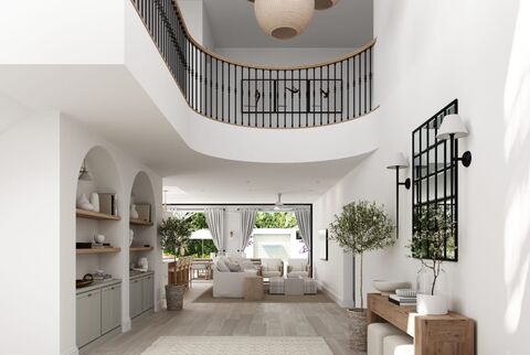 Grand Entrance: Double-height foyer leading into an open-concept living area