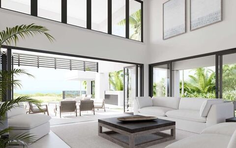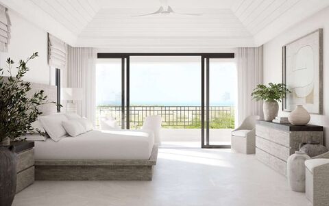 These contemporary 4,405 sq ft residences showcase an open-plan design, beginning with a grand foyer leading seamlessly to a modern kitchen and spacious great room. Boasting magnificent 19 ½ ft ceilings, the large great room invites the world’s purest air to flow through, while offering pristine golf and ocean views from covered and uncovered verandahs.