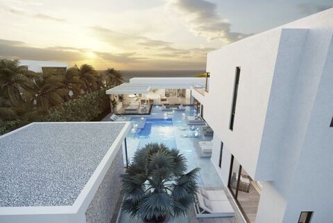 Breezy coastal meets contemporary luxury at Ocean Grove. Seamlessly integrated open plan living encourages effortless entertaining and relaxation, with ocean or water views as the idyllic backdrop. Each home floats amongst water at every intersection, from the front entrance waterfall, 2,412 sq ft saltwater pool with sunken pool lounge, and fire pit, to a 12’ internal waterfall as well a private master rooftop pool with stunning sea views.