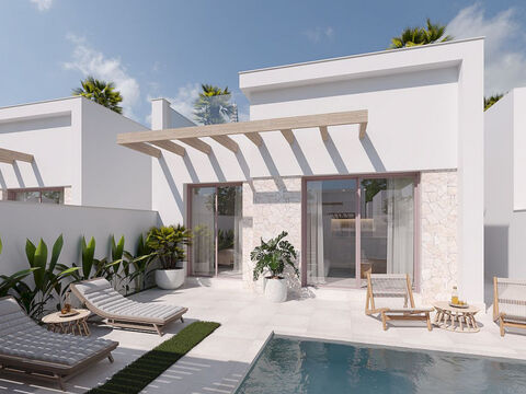 Neue Anlage bestehend aus 11 exklusiven Doppelhaushalften Villen auf einer Ebene und Solarium auf der Oberseite in der ruhigen Stadt Roldan (Torre Pacheco) Murcia, Land der Landwirtschaft, Frieden, gesunde und typisch spanische Umgebung.