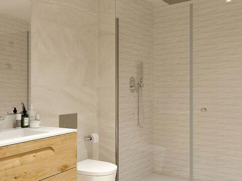 Die immobilien verfugen uber zwei oder drei Schlafzimmer und ein oder zwei Badezimmer, eine integrierte moderne Kuche und ein grosses offenes Wohn-/Esszimmer, das zu einer...