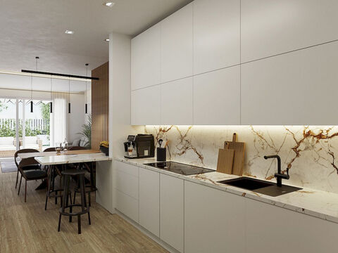 Diese modernen Neubauvillen befinden sich auf unabhangigen Grundstucken und verfugen uber 3 Schlafzimmer und 3 Bader, die sich uber zwei Etagen und ein Untergeschoss mit englischem Patio verteilen.