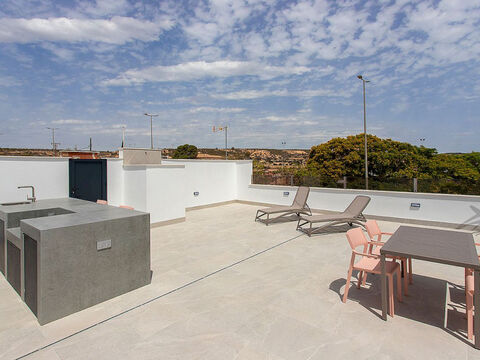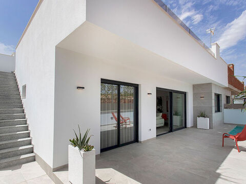 Casas Kinita ist eine Doppelhaushalfte im modernen Stil, auf einer Ebene mit 3 Schlafzimmern und 2 Badern mit Solarium und privatem Pool.
