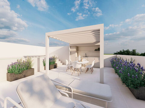 Wahlen Sie zwischen einem Bungalow im Erdgeschoss mit grosszugiger Terrasse oder einer Einheit im ersten Stock mit privater Terrasse und Solarium, zwei Schlafzimmern mit Einbausc...