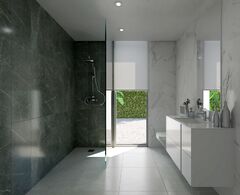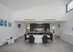 New Build residential of modern villas located in Sierra Cortina, Finestrat. Modern style New Build villas with three bedrooms, three bathrooms, open-plan kitchen, large living room with access to the terrace, private garden with the pool and parking space. Villas has a large terrace with sea and mountain views. Residential located 5 min by car from all the services that Benidorm can offer and in an environment with an average annual temperature of 20ÂșC and 300 days of sunshine a year, 44 km away from Alicante airport, 3 km from the sea and 200 meters to the golf.