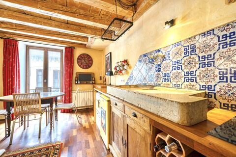 The property has a total of 62m2 of habitable space and is situated on the second floor of a pretty building on the Rue de la Republique. The property has bags of charm and character with exposed beams, parquet floors and a pretty balcony.