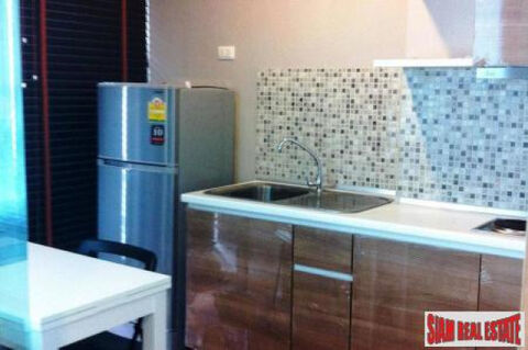For Sale unit on Rama 4, 24th fl., River View, Fully Furnished Built-In, Curtain, Wallpaper, Appliance New Condo near BTS Ekamai, 28 sq.m. 1 bed/1 bath, with nice overlooking Chaopraya River, The unit comes with: 1 car park, 2 air-conditioner, water heater, LED TV 32", 2-head electronic stove, kitchen smoke absorber, 2-door fridge, mattress, wallpaper, 2-layer curtain, blind, built-in furniture => full length sofa (can be a day bed and/or guest bed), many drawers and cabinets, turnable TV in living room (can watch in bed from bedroom), 2-in-1 dressing table/desk, wardrobe, bed, bookshelf, extending dining table, pantry