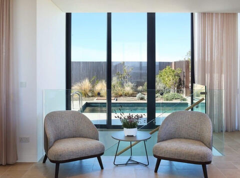 Fllowing open-plan three-bedroom layout, floor-to-ceiling windows, and thoughtfully designed courtyards, terraces, and gardens, these villas embody the essence of boundless living. A striking single-pitched roof draws inspiration from Cypriot vernacular architecture, while an outdoor kitchen, chic L-shaped seating, and a private plunge pool create the perfect setting for al fresco gatherings.