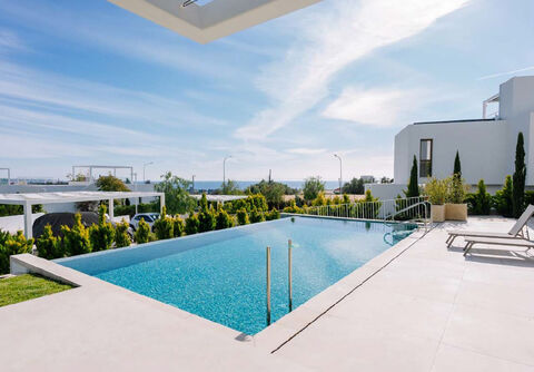 It features heated floors, a barbecue area, and a beautiful garden. The villa offers high-class finishes and stunning sea views for a comfortable stay.