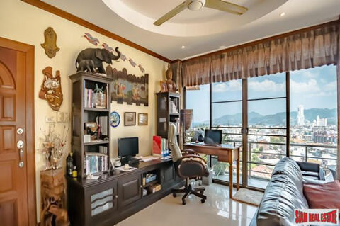This 100sqm apartment has 2 bedrooms, 1 bath, and a spacious open plan living area that you can really spread out in and enjoy. The open space living area spans the entire length of the apartment and opens onto a private balcony with green, city and ocean views. The space is currently hosting a full-sized sofa suite and an office area, with plenty of room for a formal dining area if that is preferred. There is also the balcony to enjoy the legendary Patong sunsets before heading out for a night on the town.