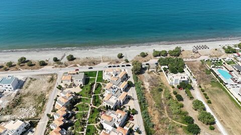 This maisonette for sale in Platanias Chania Crete is part of a luxury beachfront complex, located about 20 minutes west of Chania city. It sits right on the beautiful Pyrgos Psilonerou beach and offers access to large gardens and a 230 m2 swimming pool. The area is well-maintained, with walking paths, benches, and green spaces along the beach, which features both sandy and pebbly areas.