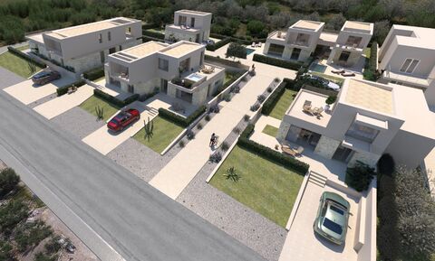 This modern project is being developed in Pyrgos Psilonerou, 17 kms west of Chania, and just a short walk from the beach. Each residence includes a garden, and a parking space too, whereas a private swimming pool can be added with an additional cost. This is an off-plan project is offering customizable designs and staged payments, high quality materials and A energy class. The construction of a house has started already.