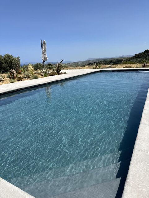 Villa in Kolimbari for sale built in 2023. The property has a surface of 220sqm, is situated on a fenced plot of 2,000sqm and overlooks the sea.