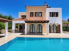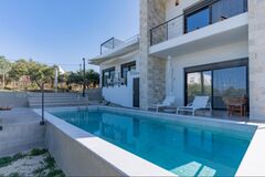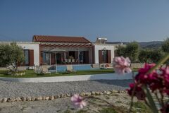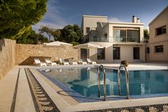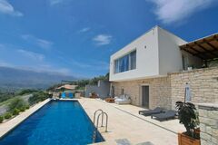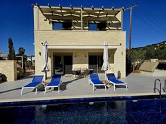This exclusive and newly constructed Villa is built on 3,700 sq.m. of land. The hillside Villa commands astounding panoramic sea-views and city-views. It is situated 19km west of the city of Heraklion and 22km from Kazantzakis International Airport (HER). The closest sandy beach is 6km away.