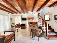 The bottom level in an entire private studio with its own access point, also suitable for a mother-in-law setting. It spans a rarge 44 sq.m. and included a kitchen and dining-area, a queen-size bed, and a luxurious bathroom with a bubble-bath. On this level there is also a big patio space with a unique rocky backdrop.