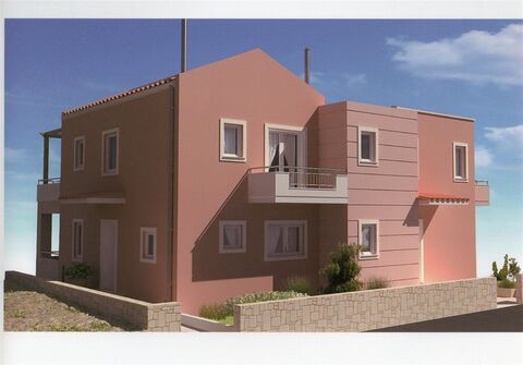 This is a project consisting of 2 maisonettes for sale in Voukolies, in Chania on the island of Crete. They have got the total surface of 207,86m2 arranged over 2 floors plus the basement of 88,51m2 built on a plot of land of 759,33m2, in the village boundaries.