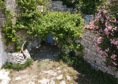 The house is two-level. On the ground floor there is a spacious living-dining room, a separate Cretan style kitchen with an electric cooker, a traditional stone hearth and access to an internal stone-tiled patio. Also on the ground floor is an arched bedroom with overhead light and a bathroom (shower + toilet) and a separate guest toilet.