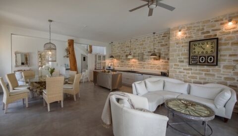 The property has 3 bedrooms all with en suite bathrooms, a fully equipped kitchen with high quality appliances and full furnishing. Additionally, the villa has silent air-conditioning units, satelite tv and solar water heating panels. Regarding the outdoor area it features a barbeque and a beautiful garden with all kinds of outdoor furniture. There are also various sitting and relaxation areas under pergolas, on a special wooden floor outside, surrounded also by many beautiful plants. The view of the villa is wild Cretan mountain view of the mountain Psiloritis.