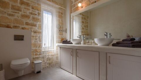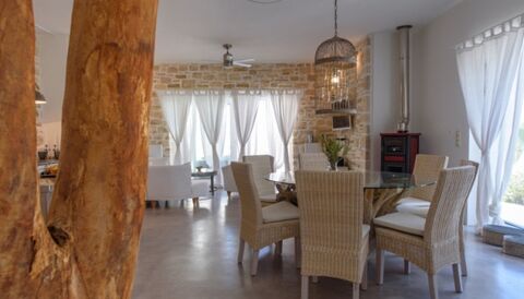 The property has 3 bedrooms all with en suite bathrooms, a fully equipped kitchen with high quality appliances and full furnishing. Additionally, the villa has silent air-conditioning units, satelite tv and solar water heating panels. Regarding the outdoor area it features a barbeque and a beautiful garden with all kinds of outdoor furniture. There are also various sitting and relaxation areas under pergolas, on a special wooden floor outside, surrounded also by many beautiful plants. The view of the villa is wild Cretan mountain view of the mountain Psiloritis.
