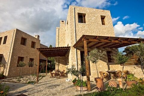 This two stone villas for sale in Crete Rethymno are located in the heart of Crete, in the traditional village of Lampini. The size of each villa is of 100sqms and there is a building license in place for three more villas. These two bedrooms two bathrooms villas have been built with local stone and traditional tiles on a 700sqms plot and have been furnished with traditional furnitures and antiques. The plot of land is fully fenced with a stone wall, with the outdoor being stone paved and designed by a garden architect. Each villa has a private pool and a private parking spot, air conditioning, solar panels and fireplace, has an excellent holiday rental income and offers amazing views over the mountains and the countryside.