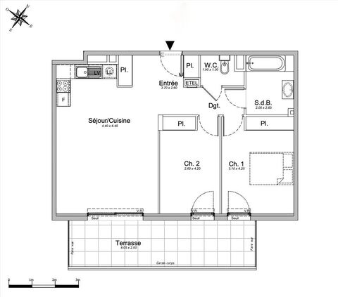 3 rooms 67M2 - Living room - 2 Bed - Bath - Terrace 26M2 - 2 Parkings