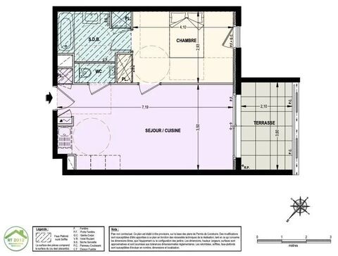 2 rooms 44,55M2 - Living room - Bed - Bath - Terrace 7,55M2 - Garage
