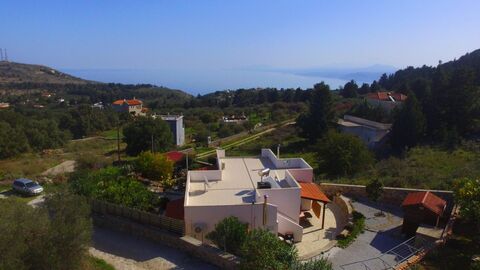 Detached house with unobstructed sea view for sale. The property is in the village of Sellia in Apokoronas, in a quiet and green location. The house is 100 sqm and is built on a plot with an area of 939sqm. it is surrounded by beautifully landscaped gardens with many trees and flowers.