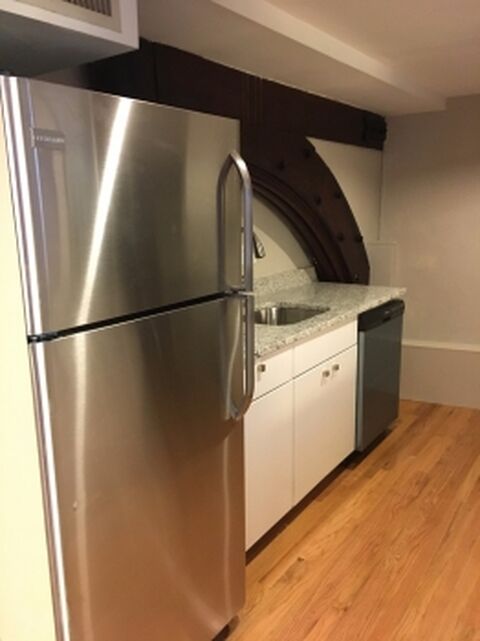 Large apartment on 3 floors in a renovated stone church. Unique, one of a kind apace. High ceilings, stained glass windows, beautiful woodwork. Parking available.