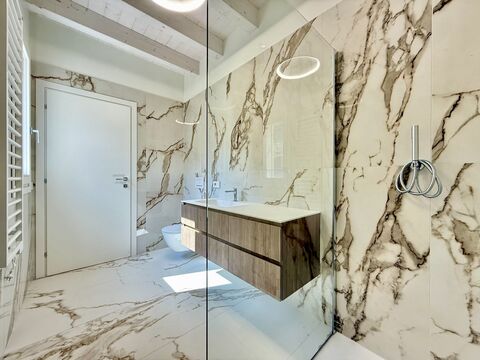 Designed with comfort in mind, this penthouse is equipped with underfloor heating, soundproofed walls, and energy-efficient features like a photovoltaic system. Enjoy the peace of mind that comes with security doors and double-glazed windows.