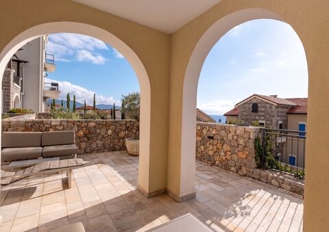 The apartment is offered for sale in the prestigious Marina Village neighborhood, within Lustica Bay, one of the most attractive destinations on the Montenegrin coast.