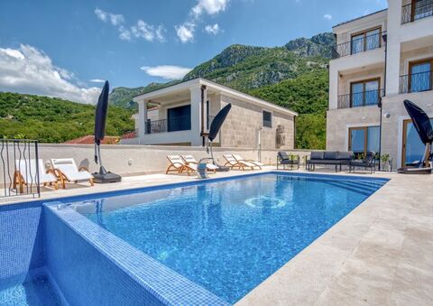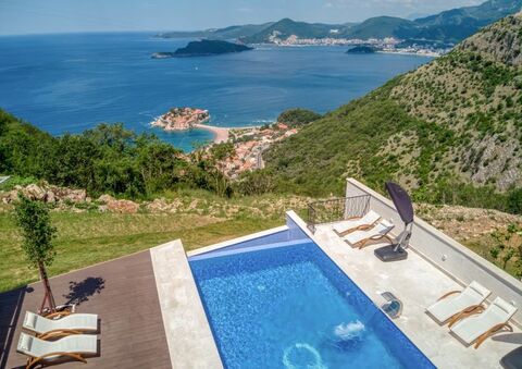 Exclusive villa with swimming pools and stunning sea view, overlooking Sveti Stefan islands, built to the highest standards.