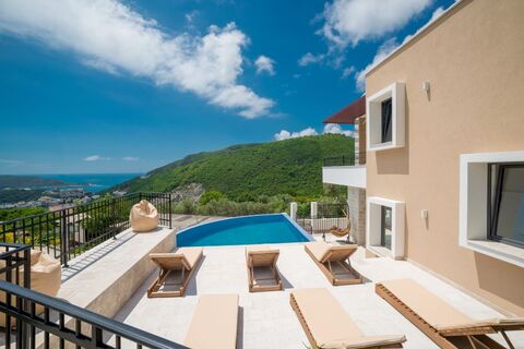 Contemporary villa in Becici with panoramic views over the open sea.