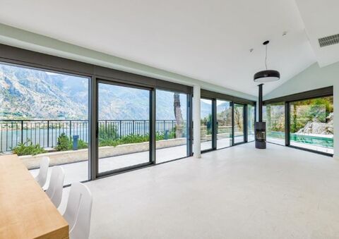 Situated in a quiet, picturesque corner of UNESCO protected Kotor Bay, this secluded villa provides the perfect sanctuary, with commanding sea views surrounded by mountains and sprawling Mediterranean gardens. The villa design is sleek, with clean lines and open, spacious interiors. Mediterranean limestone walls and characteristic sloping terracotta roof tiles float above floor-to-ceiling glass windows to maximise natural light and unobstructed, dramatic views across the Bay towards Kotor Old Town and the mountains beyond.
