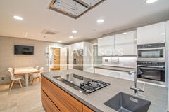 Set on a plot of 821 m2 with a total built area of 410 m2 plus a 172 m2 basement, the villa showcases cutting-edge design and high-end finishes throughout. The expansive floor-to-ceiling windows invite natural light to flood every space while seamlessly connecting the interior to the lush garden and pool terrace. The open-plan living and dining area on the ground floor flows into a fully equipped designer kitchen with premium appliances and generous storage, making it a central hub for family gatherings and entertaining.