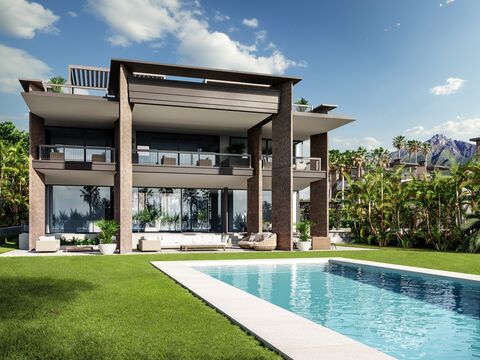 Los Palacetes de Banus is an elegant residential project offering an entirely new level of personal comfort, security and life quality to their owners, within walking distance from the famous Puerto Banus. There are 8 luxury villas built in a contemporary style preserving all the attributes of a classic mediterranean mansion with its correct proportions, galleries and patios, all united in an exceptional urbanisation with 24 hour security. Each villa is unique and has distinctive features, verandas, terraces and gardens, chill out areas and pools of different shapes.