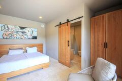 In the bedrooms you will find wood floors and cabinets and large windows. Both bathrooms are brightly lit, also with white cabinets. Inside you will find glass showers and one bathroom has a tub with another large window.