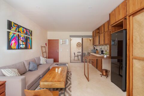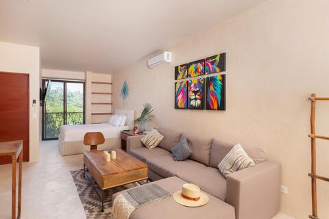 yet far enough to enjoy absolute peace. This studio, located on the second floor of one of Tulum's fastest-growing and most charming areas, offers a