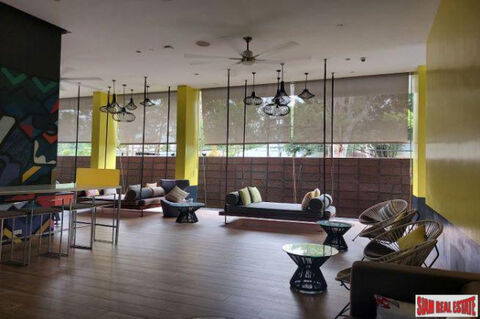 The unit is decorated in vibrant modern artwork. It has a separate living room and equipped Western kitchenette. It is air conditioned with ceiling fans.