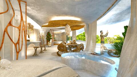 The organic architecture of this space harmonizes with the surroundings, creating an immersive experience for those seeking peace and beauty in the Mexican Caribbean.