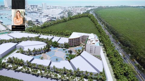 This project features 43 apartments spread across 5 levels, with options ranging from 2 to 4 bedrooms and sizes from 102 m2 to 443 m2. The interiors showcase a minimalist and functional aesthetic, with high-end finishes and spacious balconies offering stunning views of Puerto Cancun, the lagoon, or the gardens. Enjoy access to a rooftop with a swimming pool, jacuzzi, grill area, and sun deck, perfect for relaxation or entertaining guests. The development also includes a fully equipped gym, golf simulator, multipurpose room, kids club, and coworking spaces. Round-the-clock security and parking ensure comfort and peace of mind. From 2-bedroom apartments with walk-in closets and balconies to penthouses with private rooftops and up to 4 bedrooms, every space is designed to maximize comfort and functionality. Larger units feature maid's quarters, bars, and panoramic views.