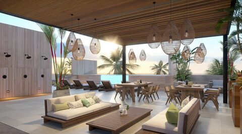 Imagine waking up every morning to the soothing sound of waves and the sea breeze gently caressing your skin. This exclusive beachfront development in Puerto Morelos offers the unique opportunity to turn your dreams into reality, where luxury blends with the authentic essence of the Caribbean. With only 72 apartments, each space has been designed for those seeking to escape urban stress and embrace a life of tranquility and connection with nature. Enjoy luxury finishes with local materials that reflect the natural beauty of the region. Amenities include a ground-floor swimming pool, a stunning rooftop with an infinity pool and ocean views, two social areas with grills, a fully equipped gym, yoga zone, and private beach. The 24-hour security lobby and premium elevators ensure comfort and peace of mind at all times.
