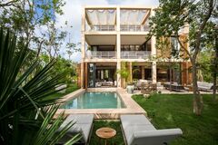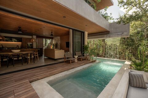 This exclusive luxury villa development offers a unique concept blending contemporary elegance with sustainability, designed for those seeking a sanctuary in harmony with nature. Each villa features spacious, light-filled layouts with natural materials and high-end finishes that reflect Tulum's conscious spirit. While exact square footage isn't specified, the design prioritizes privacy and comfort, perfect for families or discerning investors.