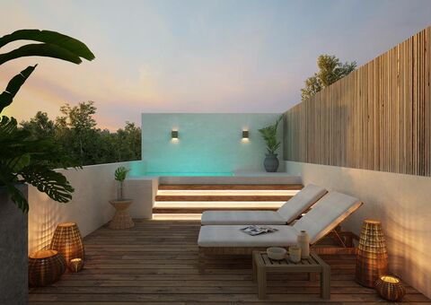 This exclusive apartment features 88.39 square meters (951 square feet) of thoughtfully designed space, blending harmony and functionality in a jungle-inspired setting. With 1 bedroom and 1 bathroom, it's perfect for those seeking a personal retreat or a vacation rental investment. The smart layout includes spacious social areas, an equipped kitchen, and a jungle-view terrace, creating a seamless blend of modern comfort and Tulum's natural essence.