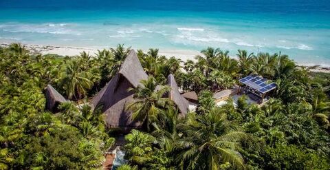 Equipped with solar panels, a power generator, and an autonomous energy system, this villa ensures comfort and sustainability at all times. Resort-style amenities include a private movie theater with a 120-inch screen, snorkel gear, kayaks, paddleboards, and a Hobie catamaran. Multiple shaded lounges, beachfront palapas, and ocean-view terraces invite relaxation and reconnection with nature.
